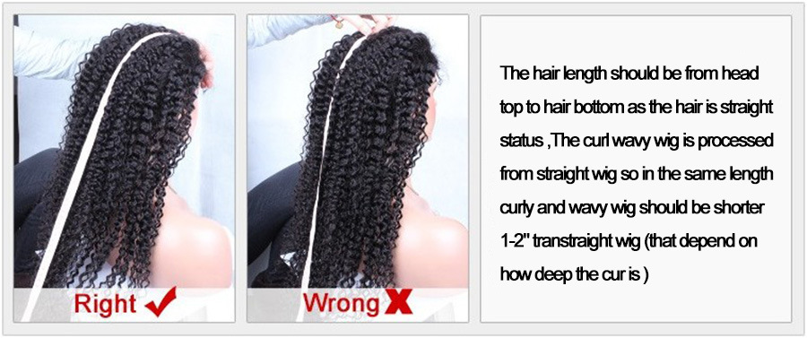 The curly,body wave,loose wave and deep wave are measured when hair is pulled straight.