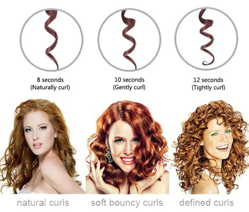 Material: Ceramic Adjustable timing: 8/10/12seconds curl direction control