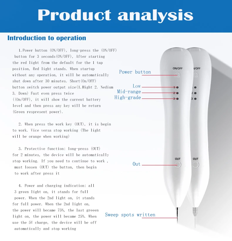 On-time Delivery: If you do not receive your purchase within 60 days, you can ask for a full refund before order completion (when you click "Confirm Order Received" or exceed confirmation timeframe).Big Special Laser Mole Removal skin care electric cautery Derma Dark Spot Freckle Remover Pen Machine with Needles Face Spa Device Massage